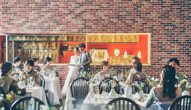 会場内のオープンキッチンから出来立ての料理をご提供するスタイルはまるでレストランのおもてなし。結婚式でも高評価のこだわりの料理で自然と会話が弾みます。